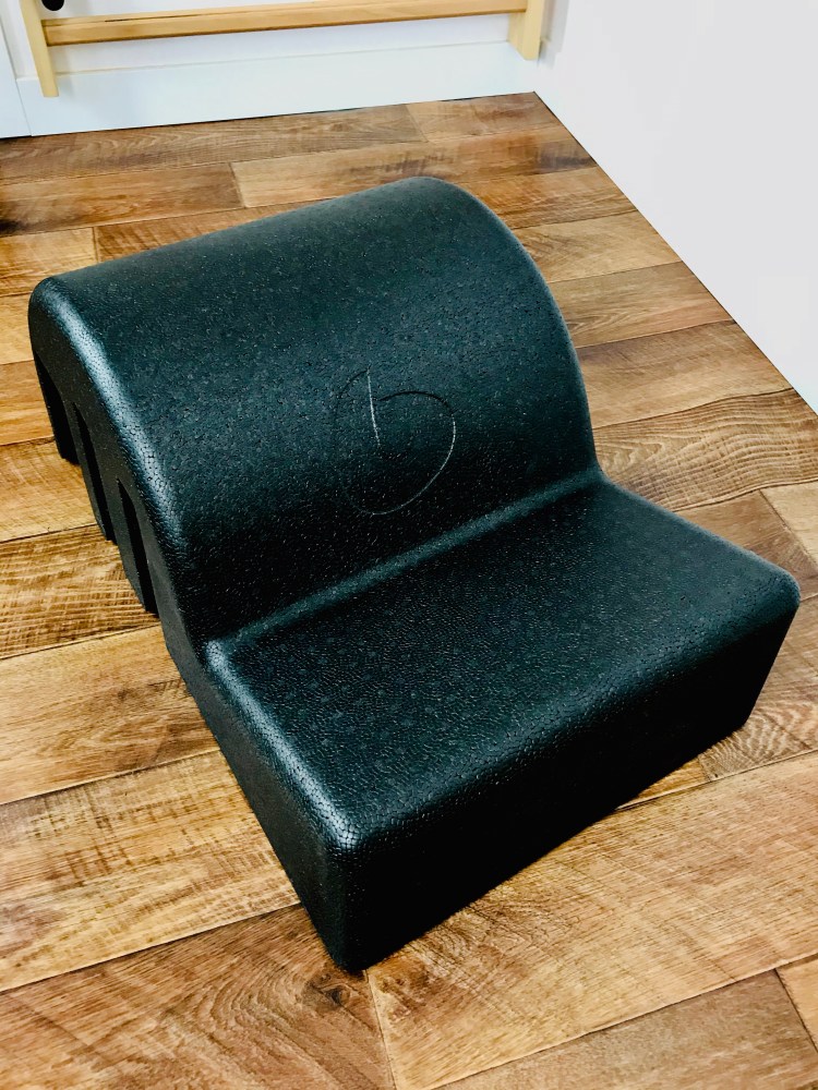 Mój egzemplarz posiada wdzięczną nazwę „Clara Barelle Lite”. Wykonany jest z wygodnej, trwałej czarnej pianki o dużej gęstości. W jego budowie zawiera się tzw „wysoki łuk” oraz pionowe wycięte uchwyty. Jego wymiary zapewniają lepsze podparcie kręgosłupa lędźwiowego, bardziej precyzyjne umieszczenie miednicy i bezpieczniejsze przedłużenie kręgosłupa. Jego ogromną zaletą jest jego waga. To aż 2 kg ![]()