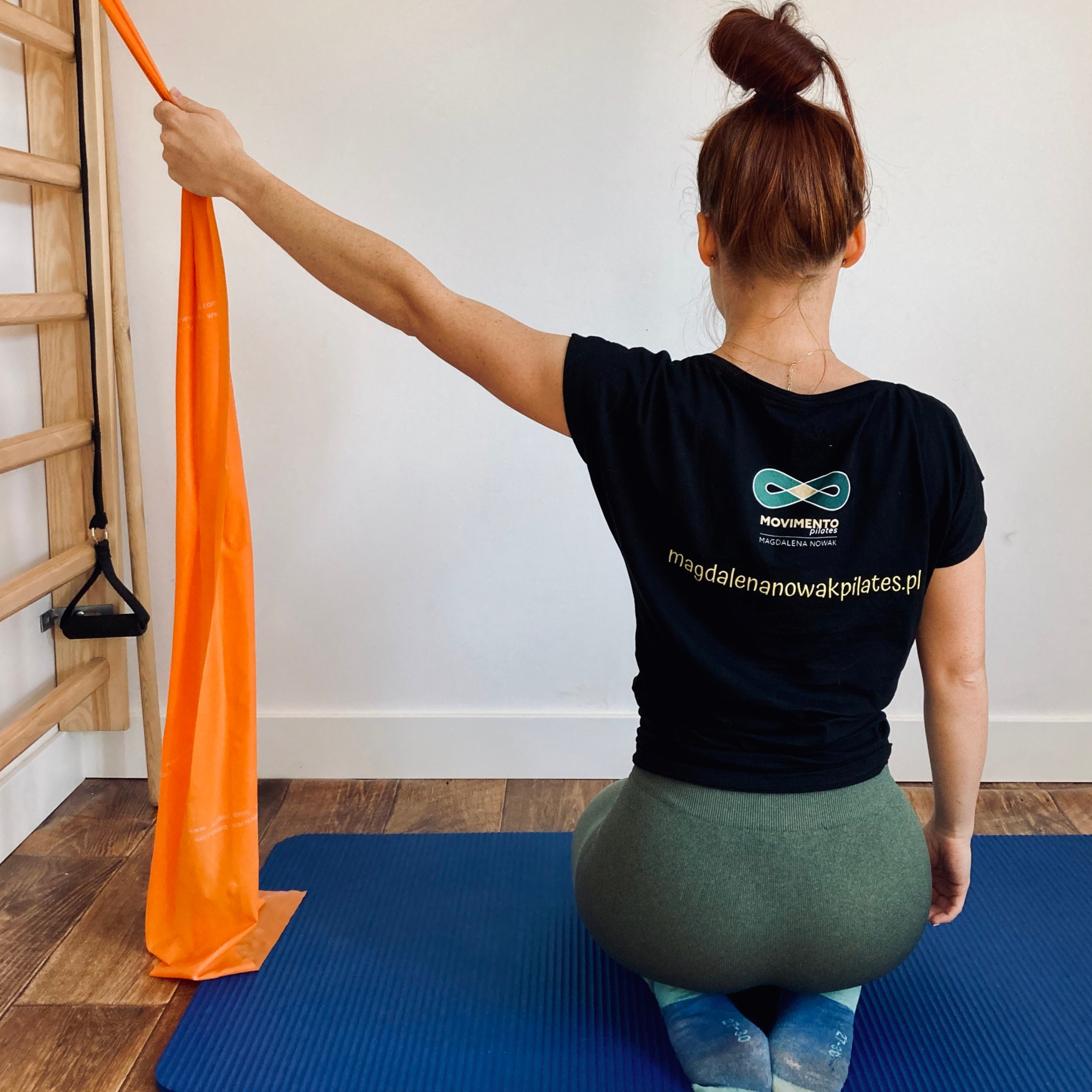 Do wykonania ćwiczenia potrzebujesz: taśmy i miejsca o które zaczepisz taśmę (może to być klamka od drzwi). Jeżeli nie posiadasz taśmy, zakupić ją możesz w sklepie internetowym SISSEL. W sklepie tym masz również rabat w wysokości 10 % z kodem: magda-10