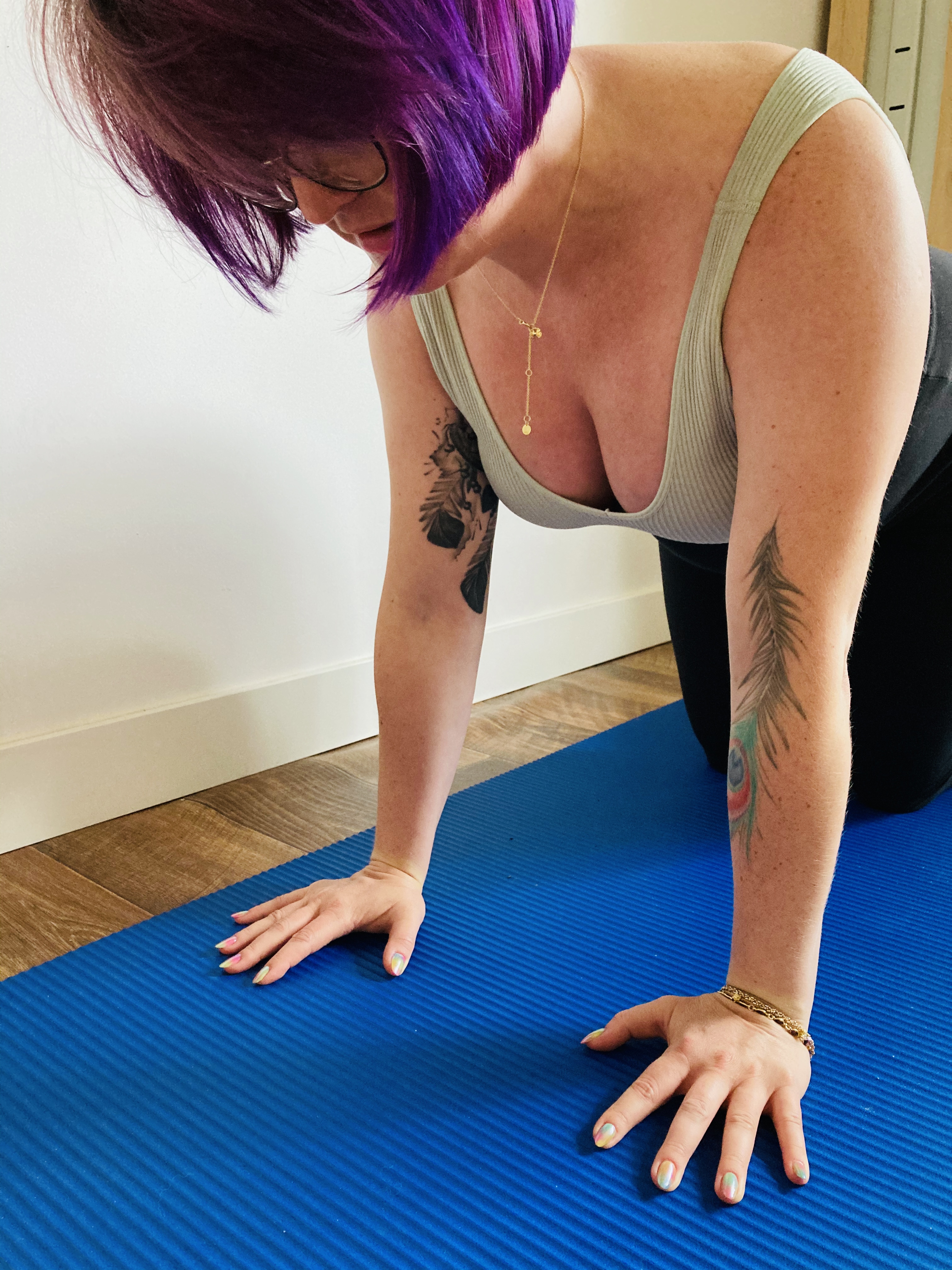 Bardzo często przyczyną bólu nadgarstków w pozycjach podpartych jest… nieprawidłowe ustawienie łopatek. Niezłe zaskoczenie, prawda? Już tłumaczę dlaczego tak się dzieje. Gdy łopatka leży stabilnie na ścianie pleców, wszystkie mięśnie znajdujące się wokół niej są zaangażowane. Obręcz barkowa jest w całości zaangażowana w pozycję i ciężar ciała dłoni zamiast spoczywać na samym nadgarstku rozkłada się na całą rękę i obręcz barkową. Pamiętajmy tu także o zasadzie z fizyki, czyli tyle ile naciskamy dłonią na podłogę, tyle podłoga nam oddaje. Gdy łopatka jest odstająca i dosłownie wisi w powietrzu (gdyż mięśnie jej nie stabilizują), podłoga oddaje, a ciężar barku spada bezpośrednio na nadgarstek.