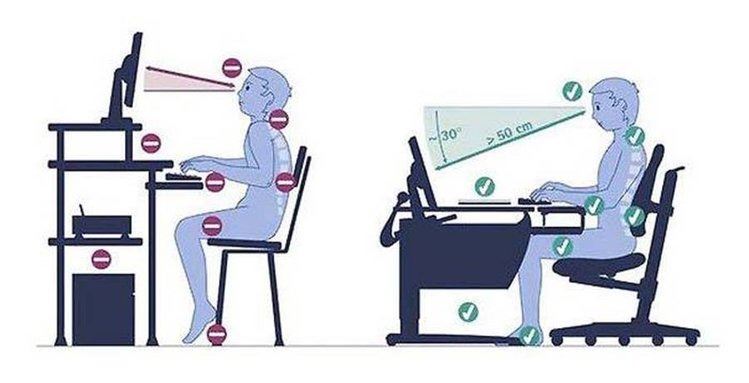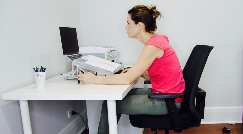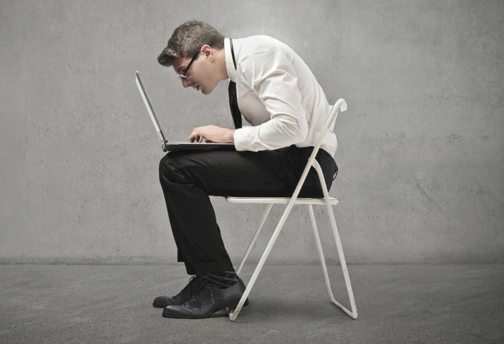 Zwróć uwagę na to jak często podczas siedzenia przy komputerze wysuwasz głowę w przód. Zapewne robisz to już odruchowo i nieświadomie. Ta nieuwaga może Cię kosztować zaburzenie równowagi ciała, podczas której angażujesz mięśnie szyi do dużo większego wysiłku niż powinieneś. Obciążenie jakie ląduje na kręgach szyjnych wielokrotnie się zwiększa. Dodatkowo podczas takiego procesu zmniejszasz odległość oczu od ekranu czego efektem jest uczucie ciężkich, obolałych pleców i karku. Szybko po tym następuje zaburzenie koncentracji i ból głowy z czasem przybierający na sile. Często też można dorobić się problemów ze wzrokiem.