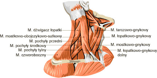 Zobacz ile mięśni mamy w szyi! Są cienkie i długie. Łączą głowę z mostkiem, obojczykiem, łopatką i kręgosłupem.