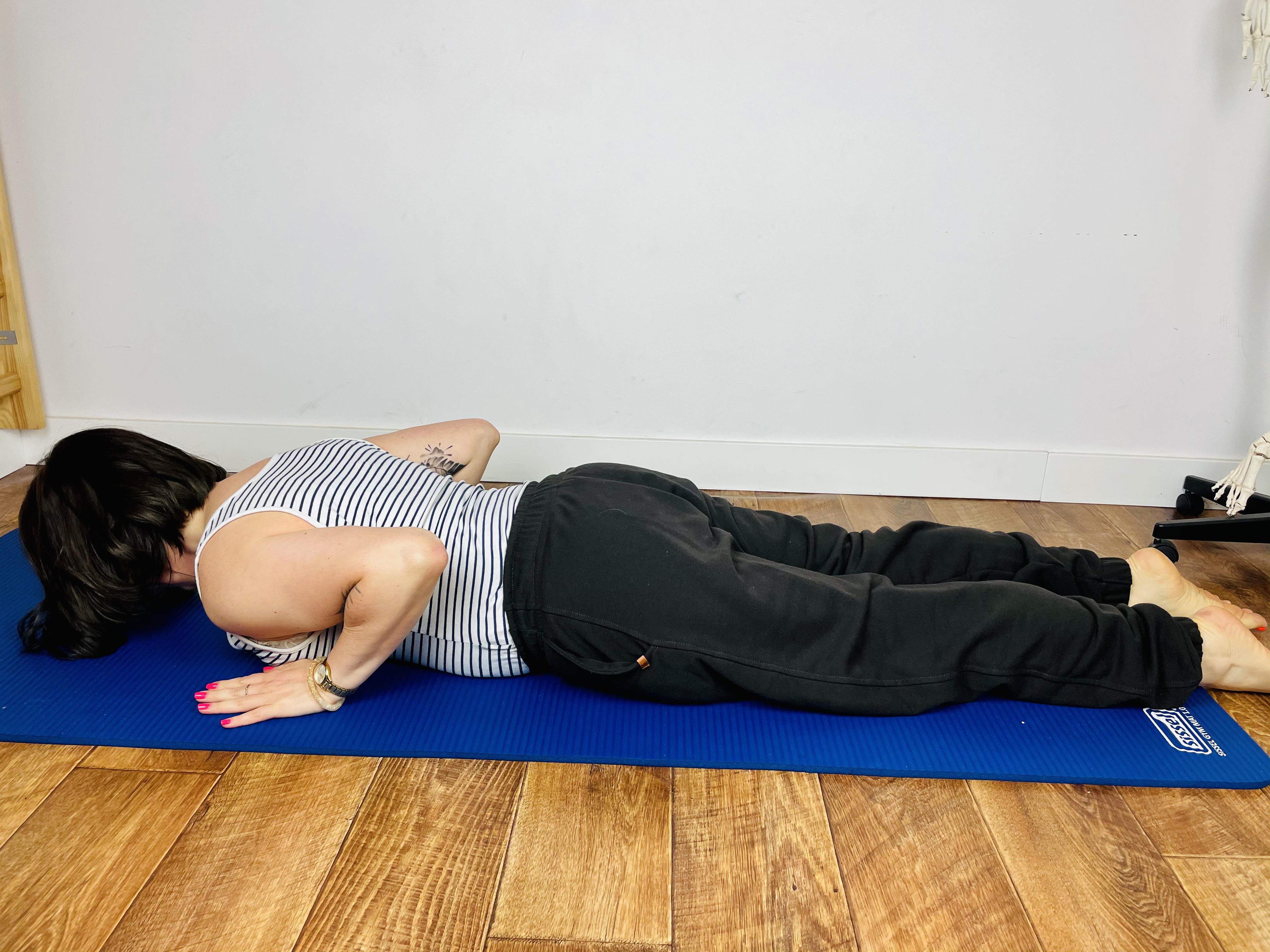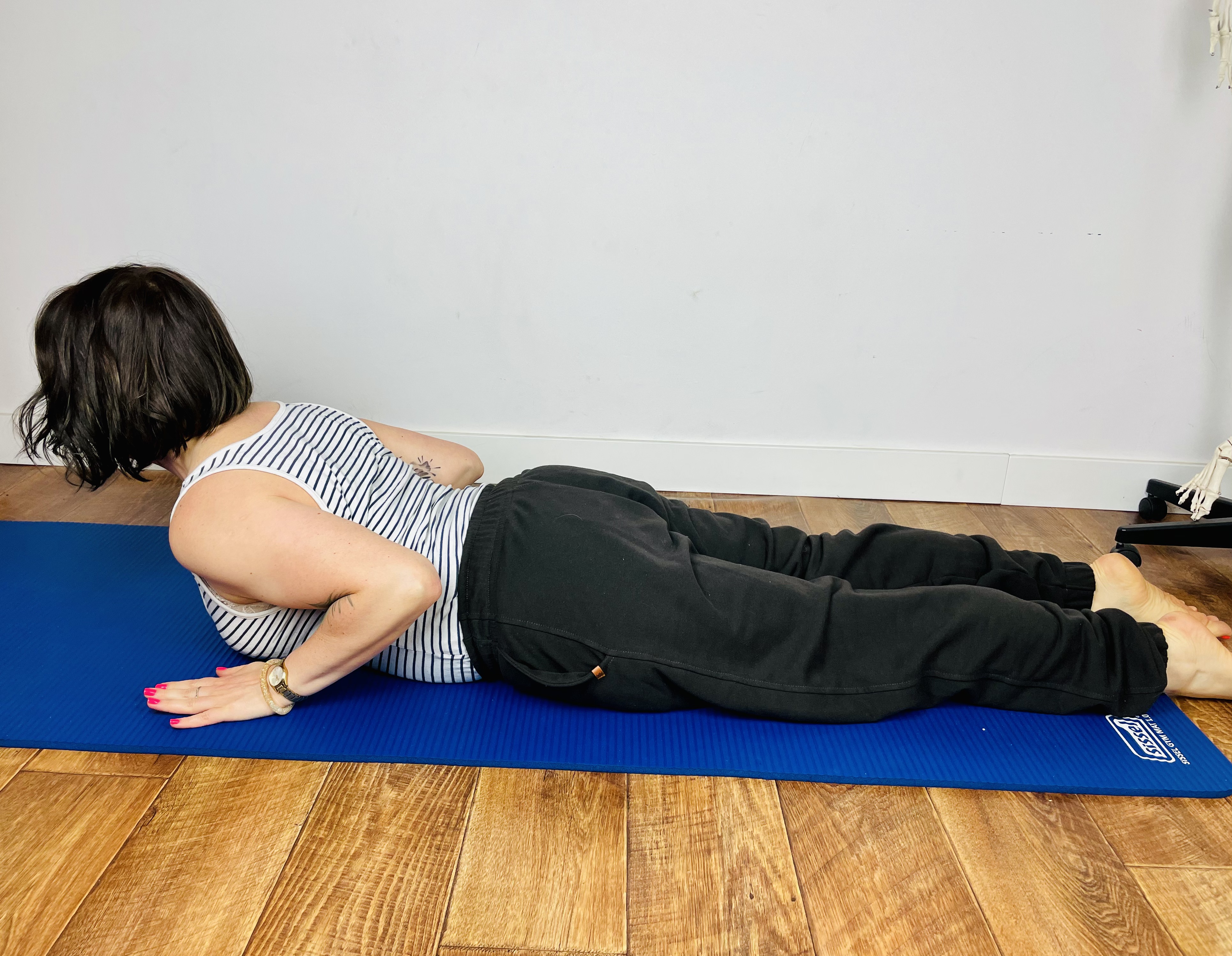 Ćwiczenie 5: Swan dive – (rozciągnięcie klatki piersiowej, wzmocnienie mięśni pośladków, mobilizacja odcinka piersiowego)