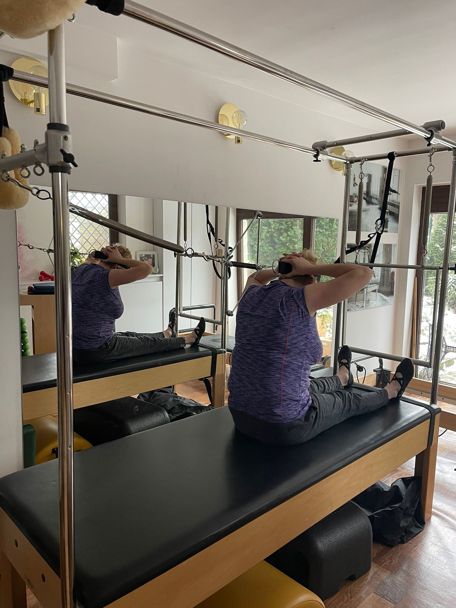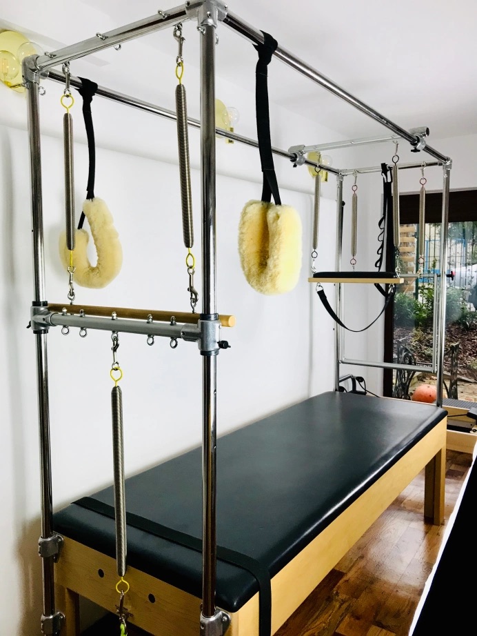Bardzo istotną rolę odgrywa fakt stabilnej nieruchomej maty (czyli powierzchni, na której pacjent leży) zamiast ruchomego wózka. Daje to o wiele bardziej bezpieczną pracę, gdzie klient może skoncentrować się na pozycji i jakości wykonywanego ruchu, zamiast na utrzymywaniu stabilizacji przeciwko ruchomemu podłożu (jak to się dzieje w przypadku reformera). A jak wiadomo, na samym początku pracy z nową osobą, która zgłasza problemy kręgosłupowe, im mniej stabilna powierzchnia, tym trudniejsza praca, i to jest dopiero dalszy etap pracy. Równie ważną kwestią jest możliwość podpinania sprężyn o różnym oporze w najróżniejszych punktach łóżka. Co nam to daje? Różne długości dźwigni, zmianę napięcia wyjściowego sprężyny (czyli utrudnienie lub ułatwienie ruchu na starcie), zupełnie inny ruch i różnorodną pracę mięśni.