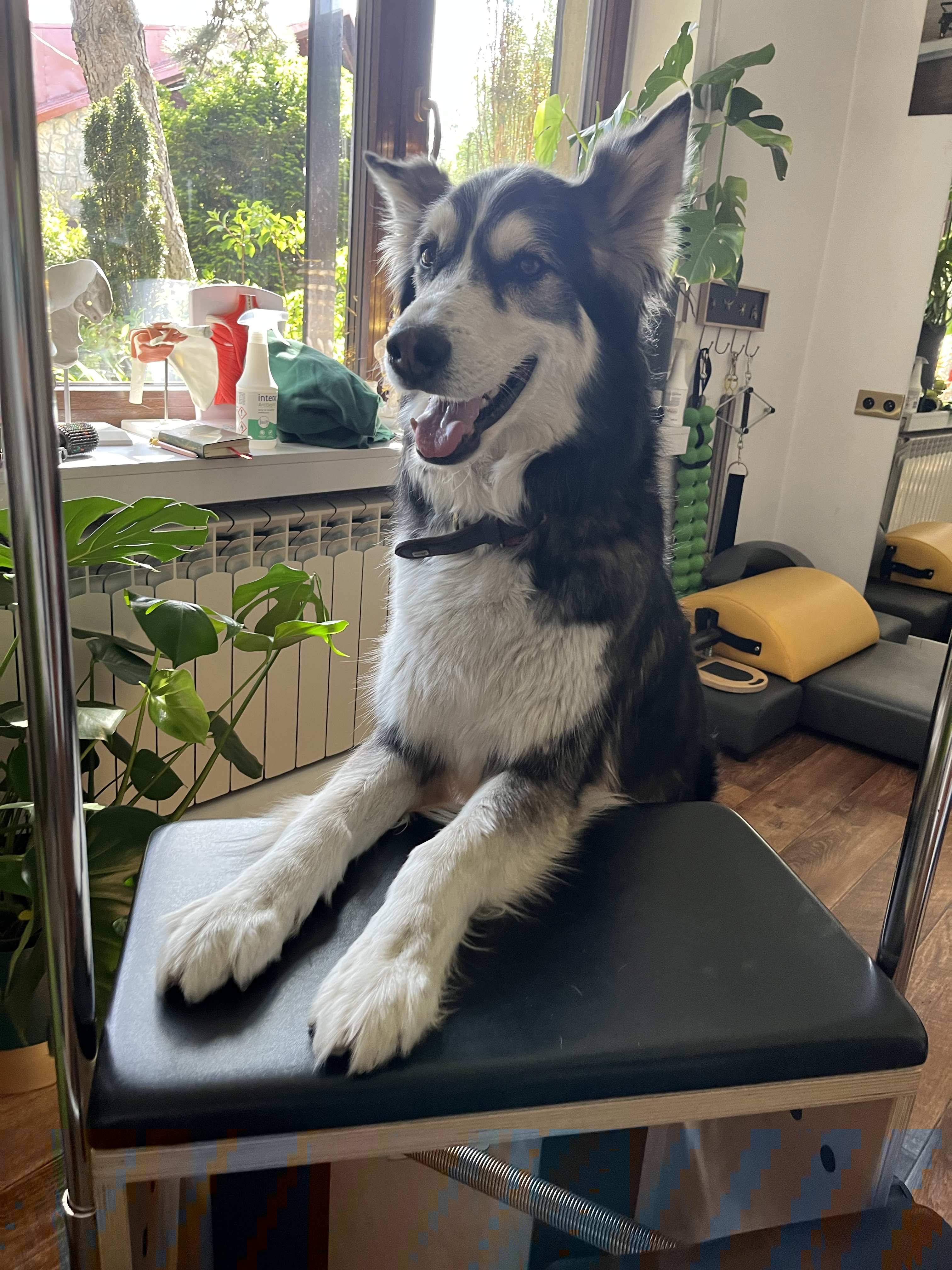 To da się odczuć. Gałgan jest takim psim terapeutą. Ma w sobie coś takiego, że klienci czują się w jego towarzystwie naprawdę dobrze. Często wyczuwa kiedy klient ma jakieś trudności w wykonywaniu ćwiczeń lub po prostu czuje się źle. Wtedy przygodzi i kładzie swój pyszczek patrząc głęboko w oczy jakby mówił „Hej wszystko będzie dobrze, dasz radę”. Wiele razy byłam świadkiem sytuacji, gdzie przychodził do mnie klient niepełnosprawny, a Gałgan kładł swój pysk na jego chorej części ciała. Wielokrotnie również spotkały mnie stacje, gdzie klient zamiast ćwiczyć, po ciężkim dniu, wolał przytulać Gałgana i rozmawiać ze mną, niż ćwiczyć. Taki rodzaj psycho i dogoterapii.